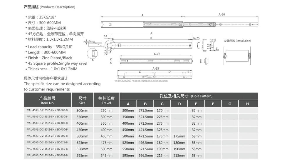 Aodeli Modern Home Kitchen Cajón de extensión completa Diapositivas Bola de acero chapada en zinc Movimiento suave Hecho Vietnam para comedor Dormitorio