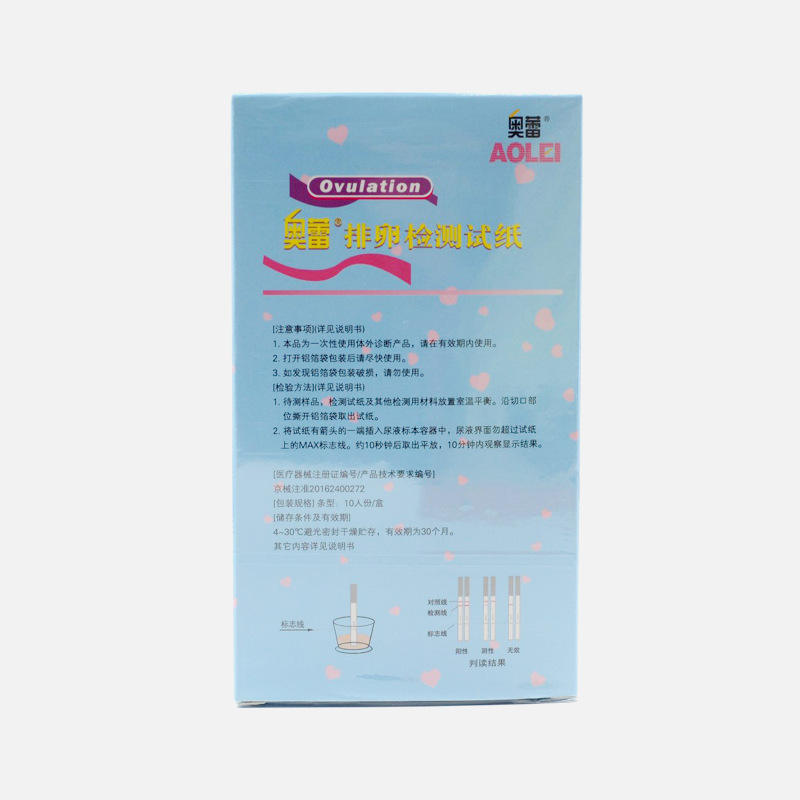 Tiras de prueba de ovulación Aolei, caja de 10 pruebas, método de oro coloidal para monitoreo de fertilidad