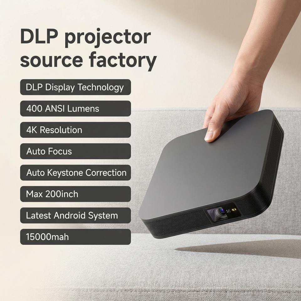 Proyector de Tiro Corto Aome Factory S500 con Android 13.0 OS, IA, 4K, 3D, Mini Cine en Casa, Portátil, DLP, con Batería de Gran Capacidad, Enchufe Estadounidense