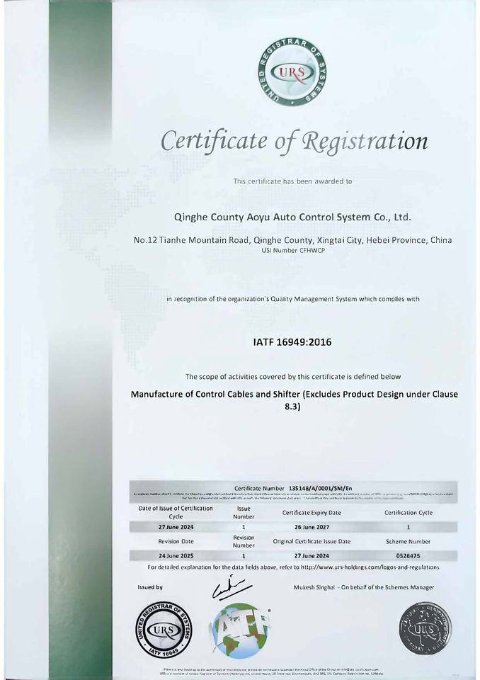 Certification:IATF16949:2016
