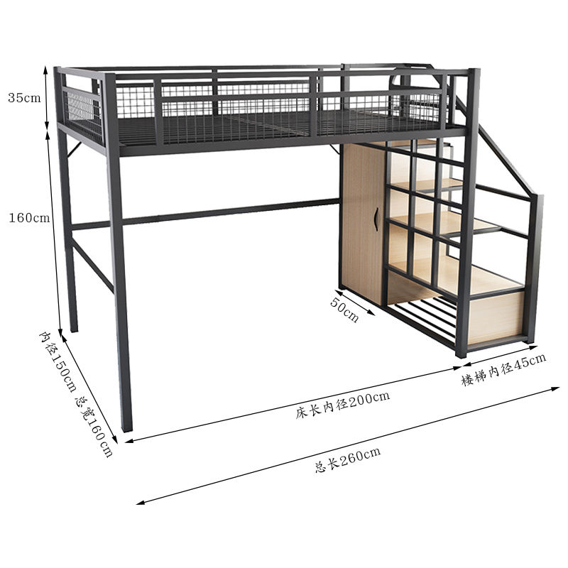 Apartamento Área pequeña Cama Loft con escritorio Casillero Escalera Marco de cama de loft de metal