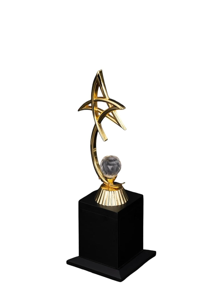 Nombre del producto:Trofeo de cristal con cuerpo de metal, base de madera y globo