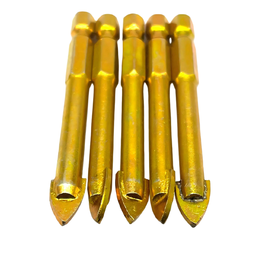Brocas para vidrio Apextech Apt-24 personalizadas con vástago hexagonal, punta de carburo de tungsteno cruzada, punta de carburo simple, 35 mm de longitud total
