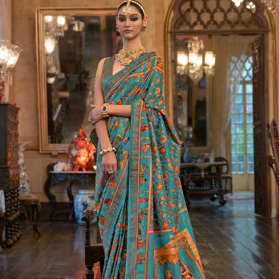Apoxy Finish Digital Impreso Hermosa colección PV Silk Sari para bodas y fiestas