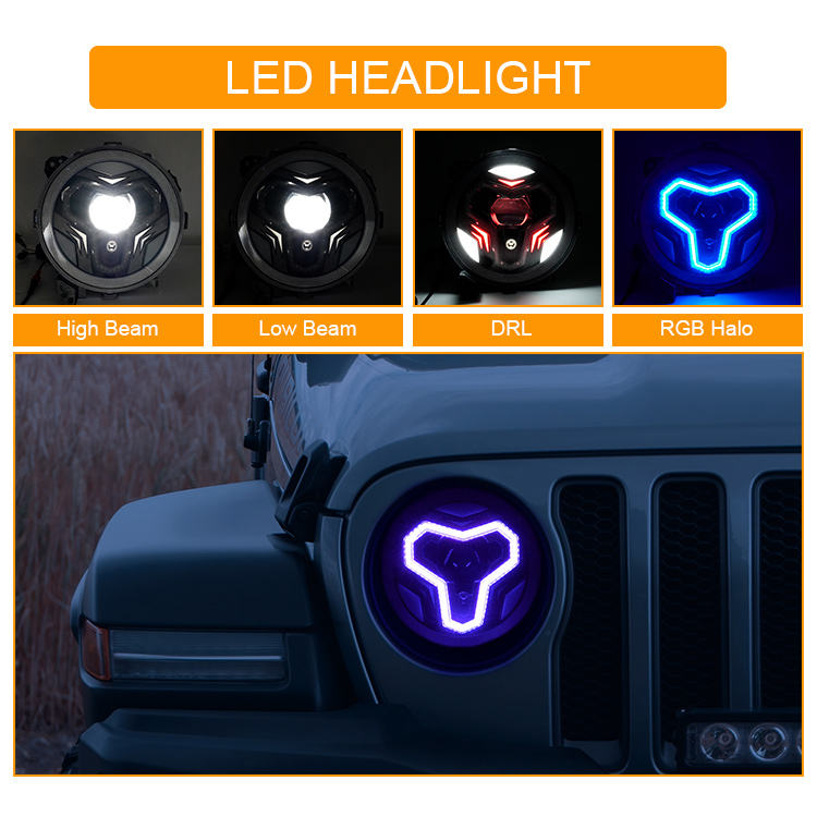 App Control RGB halo Faro Led redondo de 9 pulgadas para Jeep Gladiator JT 2022 2023 Jeep Wrangler JL 2018 +