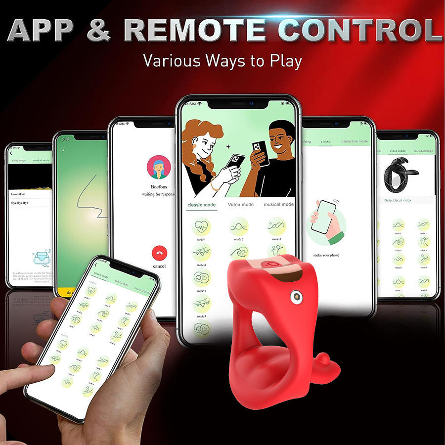 Aplicación vibrador masajeador de próstata anillo de bloqueo para retrasar la eyaculación aumentar el tiempo de placer anillo de bloqueo de Control remoto de lengua