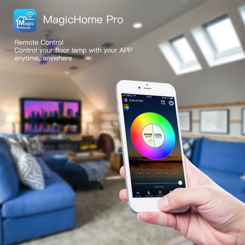 Lámpara de Pie LED RGBW Inteligente con Control por Voz y Aplicación, con Pantalla Blanca, Diseño Moderno Tipo Torchiere