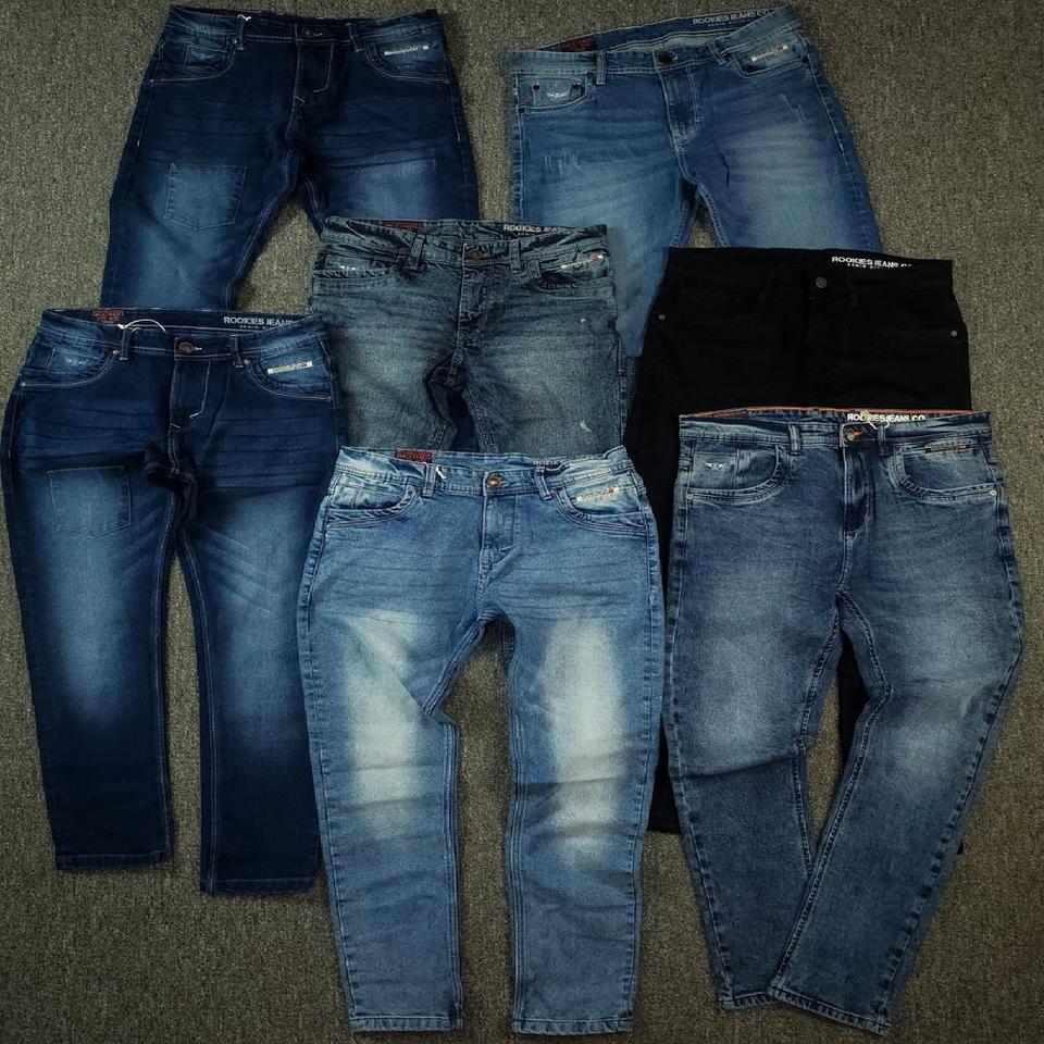 Lote de existencias de prendas de vestir, pantalones vaqueros Vintage de alta calidad para hombre, Vaqueros elásticos ajustados informales clásicos, exceso de lavado de cintura media, lote de existencias excedentes