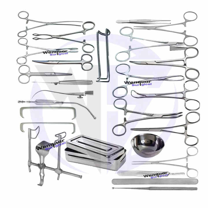 Juego de instrumentos quirúrgicos para apendectomía y hernia, 44/Uds, herramientas de cirugía General, tijeras de Mayo, cánula Yankauer, retractor Farabeuf