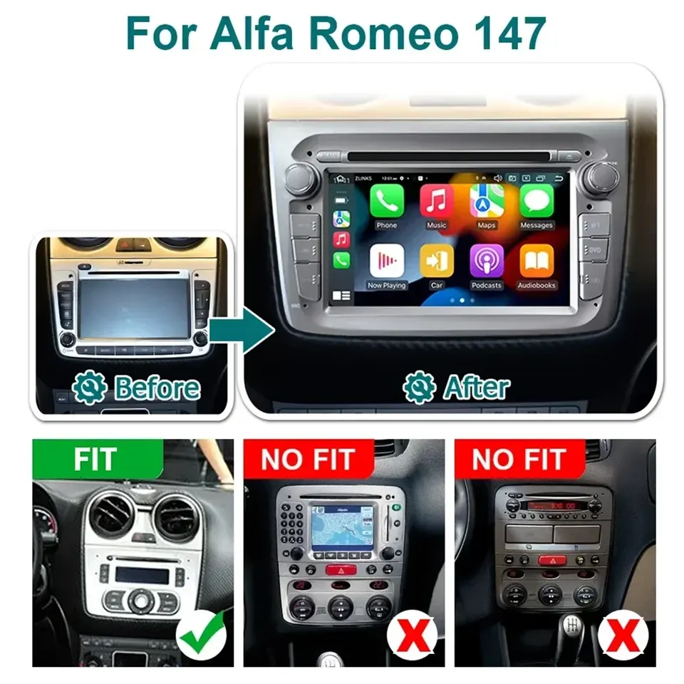 Radio para Auto con Apple CarPlay y Android Auto para Alfa Romeo Mito 2008-2013, FM RDS, Navegación GPS, Wifi, 4G LTE, Pantalla Táctil IPS