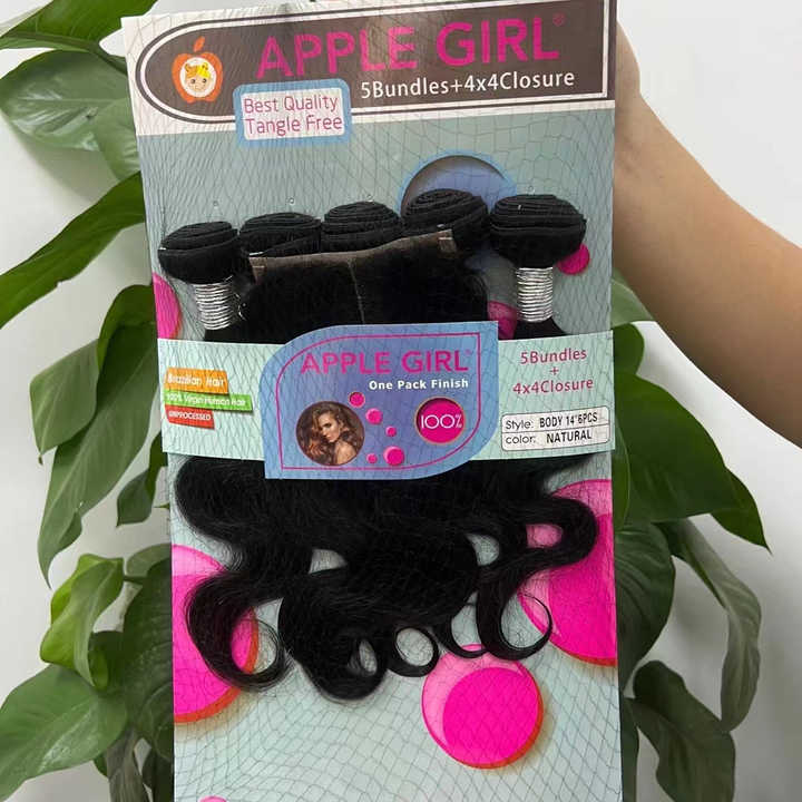Apple Girl-extensiones de cabello humano brasileño virgen, cabello ondulado con cierre