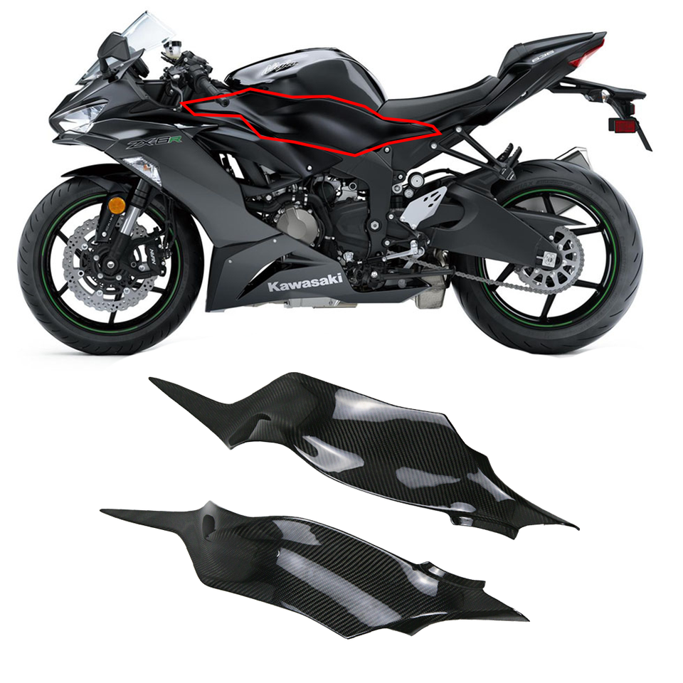 Carenado de Motocicleta Aplicable ZX6R 636, Juego Completo Modificado de Fibra de Carbono, Guardabarros, Cubierta de Tanque de Combustible, Deflector de Viento, Negro
