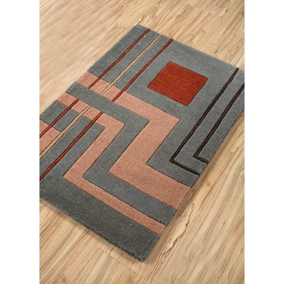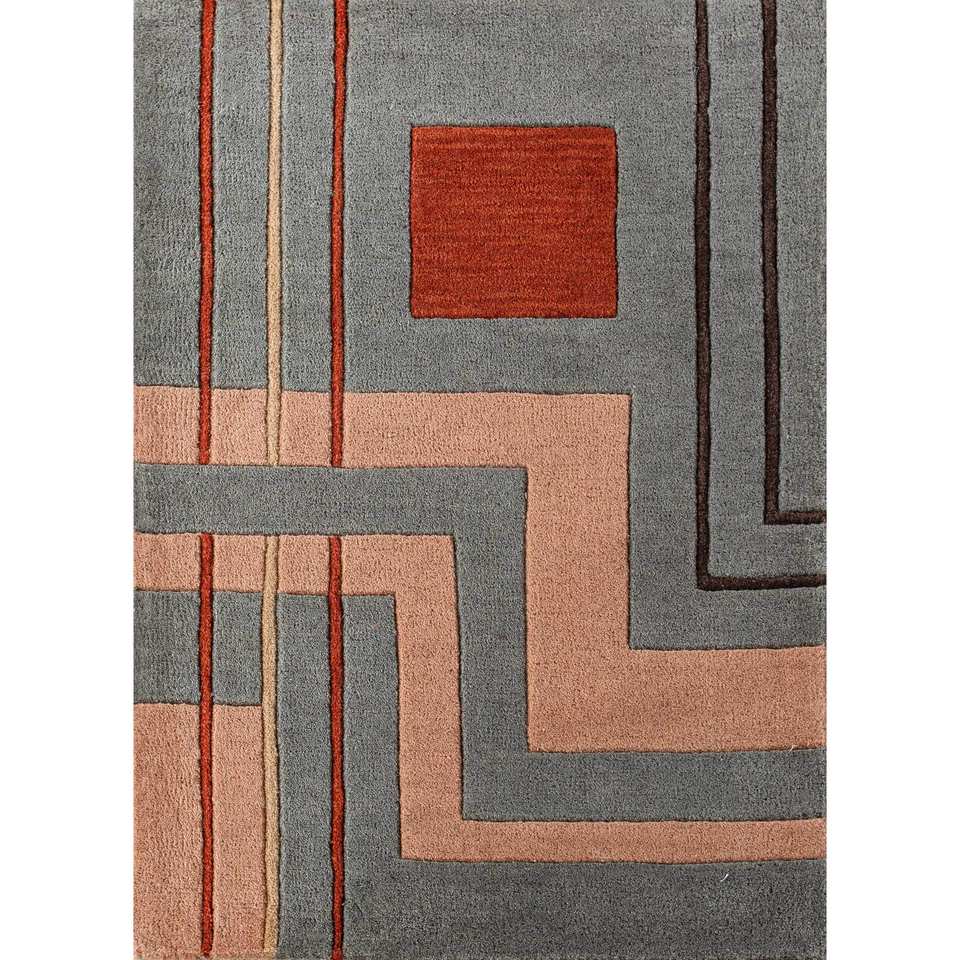 Alfombra de Lana con Patrón Geométrico Azul Aprezo, Hecha a Mano, Rectangular de 9x12, para Pasillo, 10 mm, Viscosa, Tac-7079, para el Hogar, Alfombras Jaipur ZA