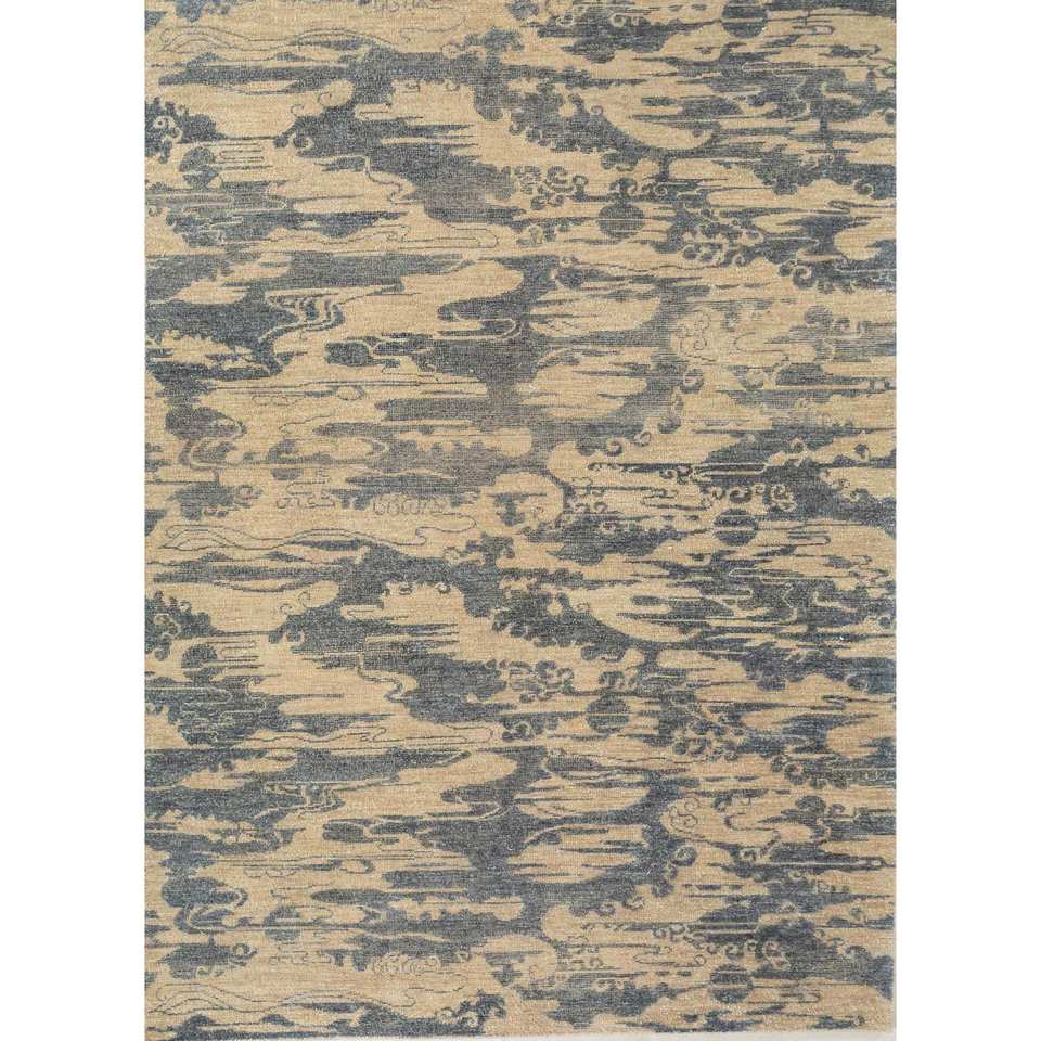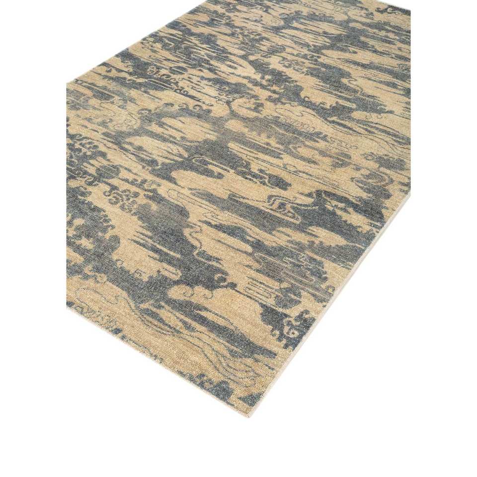 Alfombra de Lana Anudada a Mano Aprezo Azul, Rectangular de 9x12, con Patrón Abstracto para Sala de Estar, Pasillo, Modelo Skwl-421