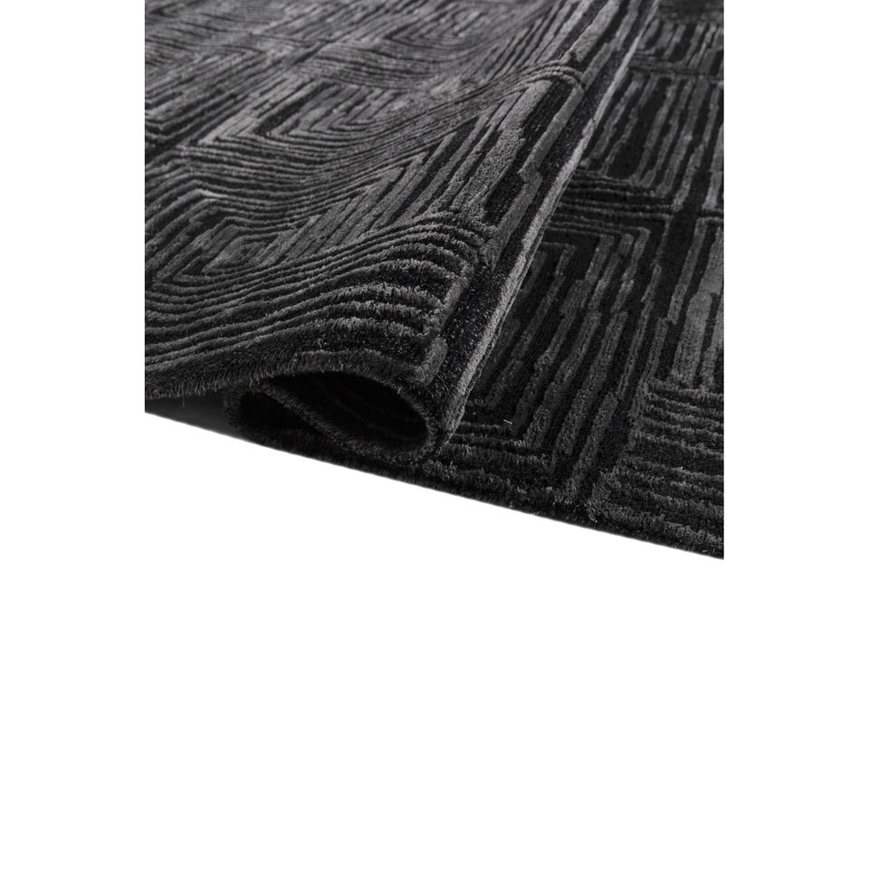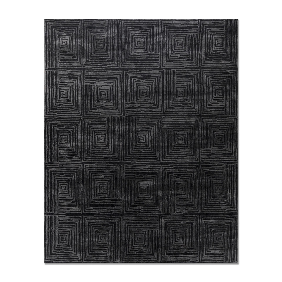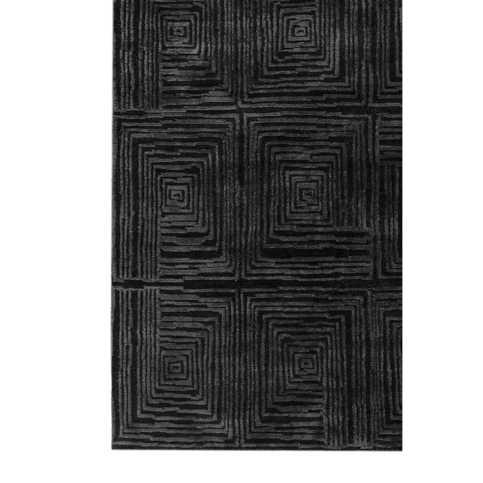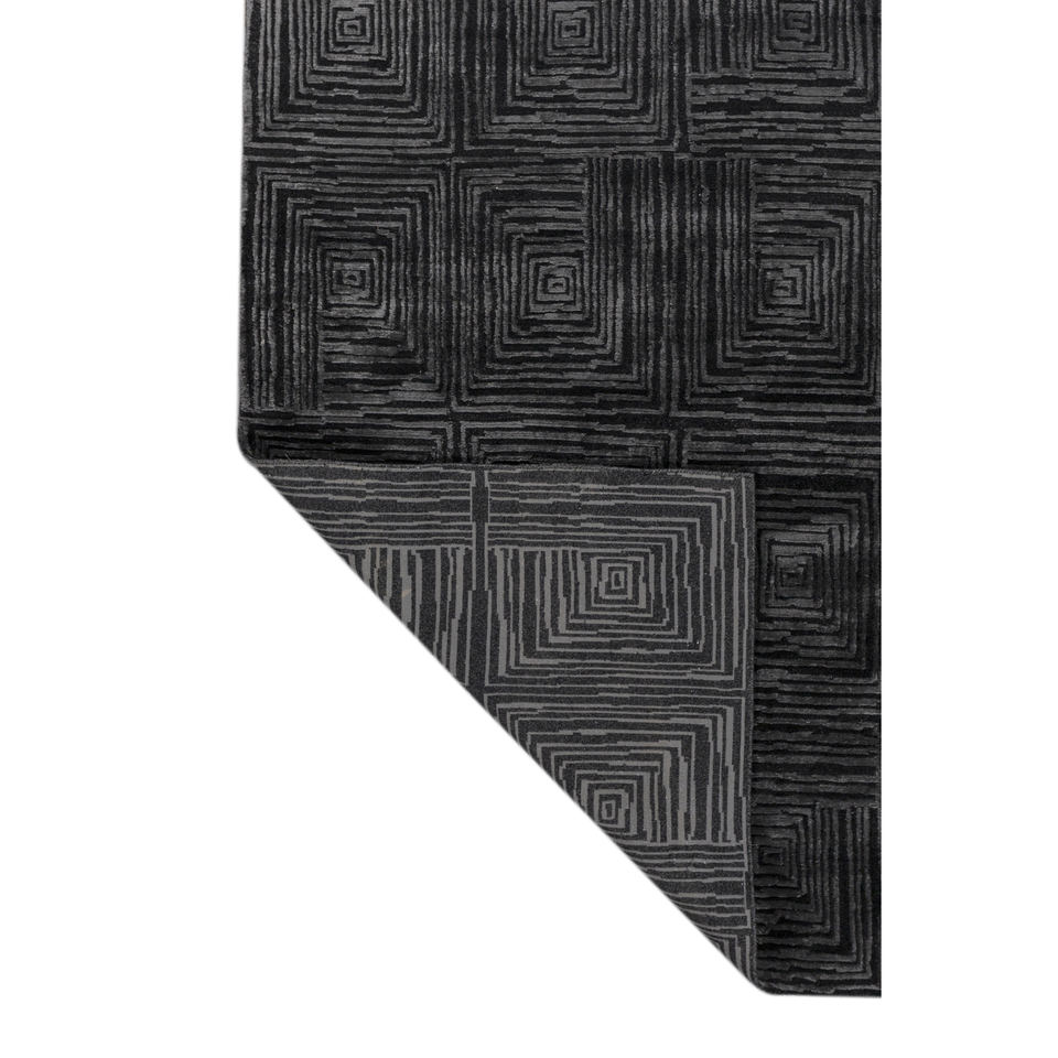 Alfombra Aprezo Clásica Geométrica Anudada a Mano de Acrílico Gris y Negro Aiar-3013 de Tejido Plano para Sala de Estar, Pasillo, Estilo Moderno