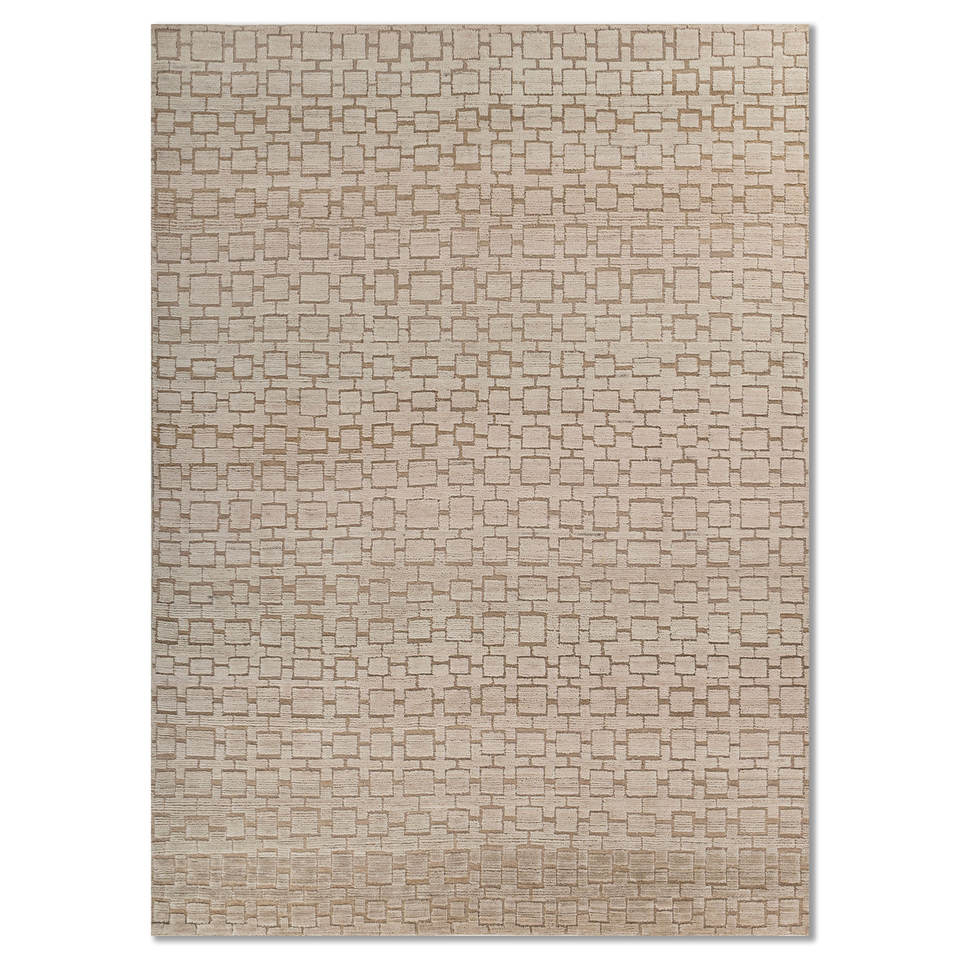 Alfombra de Lana Anudada a Mano Aprezo Gold AKWJ-1035 con Patrón Geométrico para Decoración de Sala de Estar, Entrada, Pasillo, Rectangular de 9x12