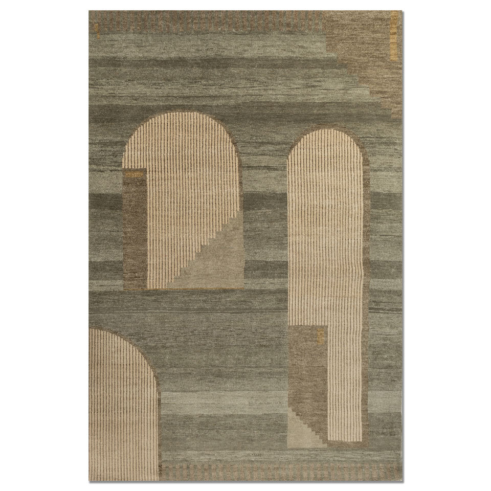 Alfombra de Lana Anudada a Mano Aprezo Verde Lca-1550 con Patrón Abstracto para Sala de Estar, Alfombra Rectangular de 9x12 para Entrada y Pasillo