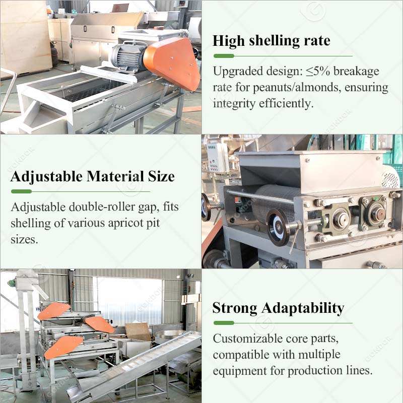 Aplicación:Abridor y descascarillador de frutos secos (albaricoques, avellanas)