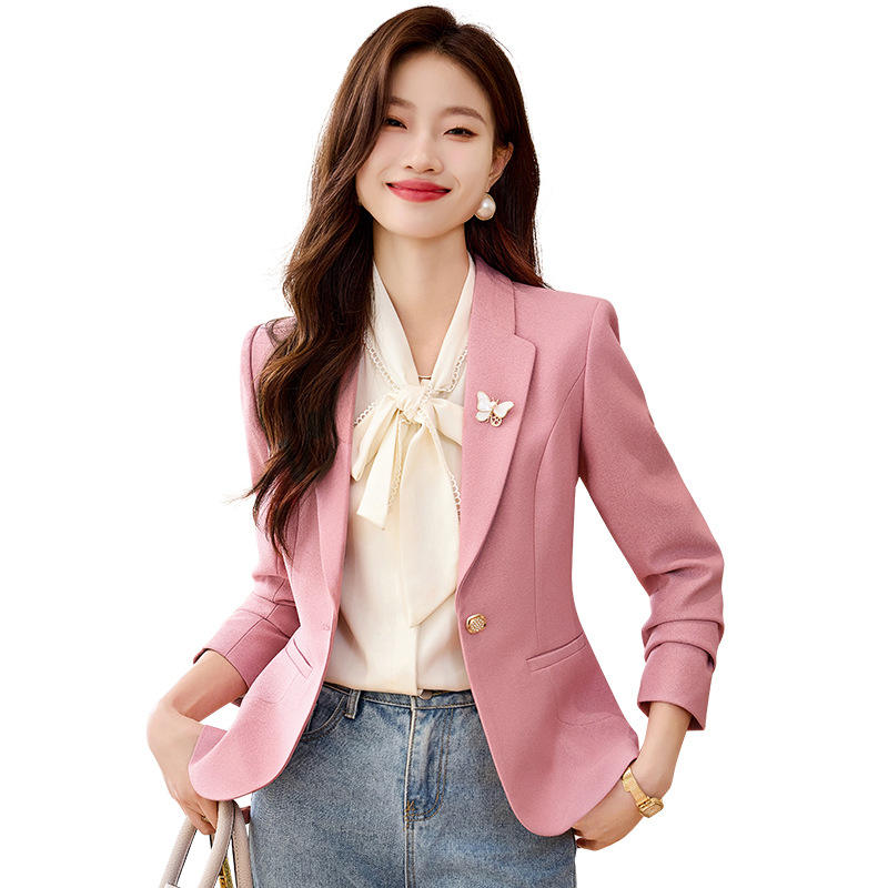 Apricot Short Blazer For Women Spring Autumn Solid Color Polyester Casual Elegant Fit Small Size