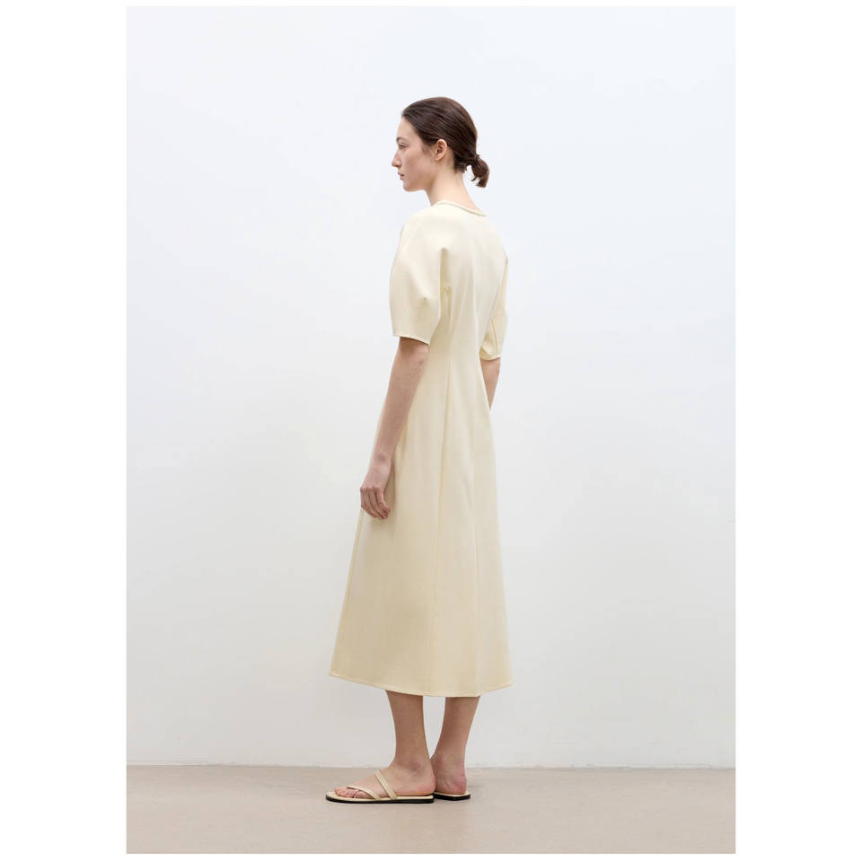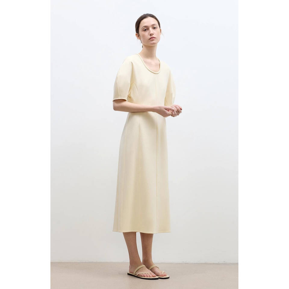 Vestido de punto con cuello en U y cintura dividida con falda curva 3D para mujer, modelo April Story