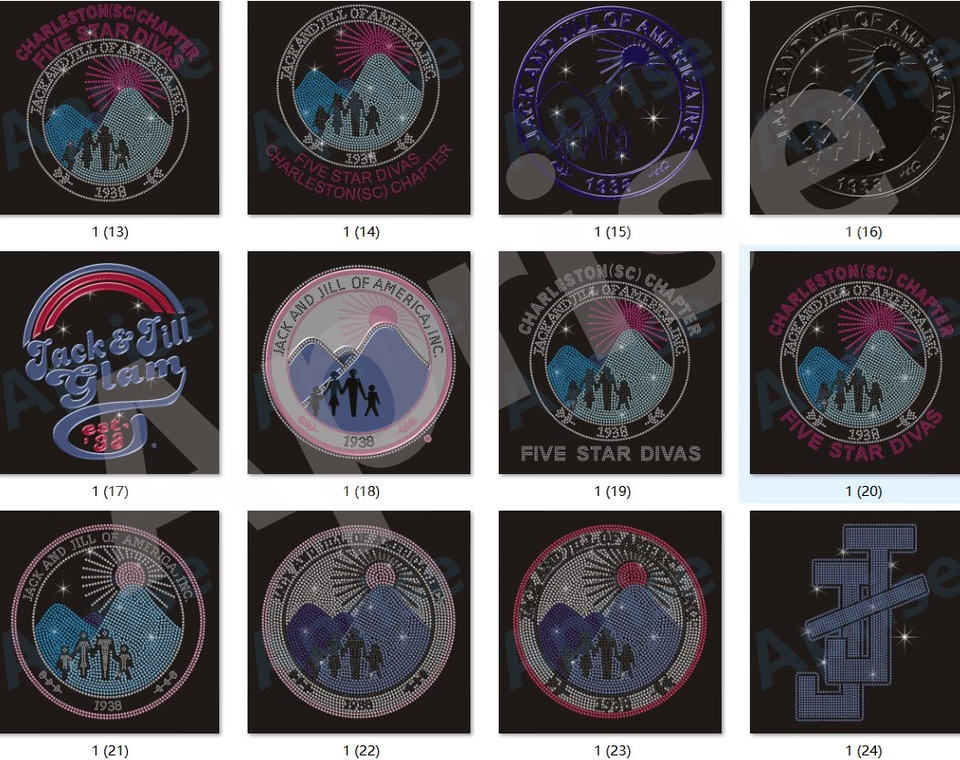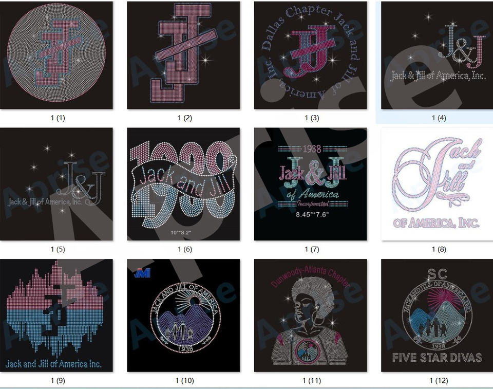 Aprise-Personalizado Five Star Divas SC 1938 Jack y Jill Chapter Iron en diseños de transferencia de calor de diamantes de imitación