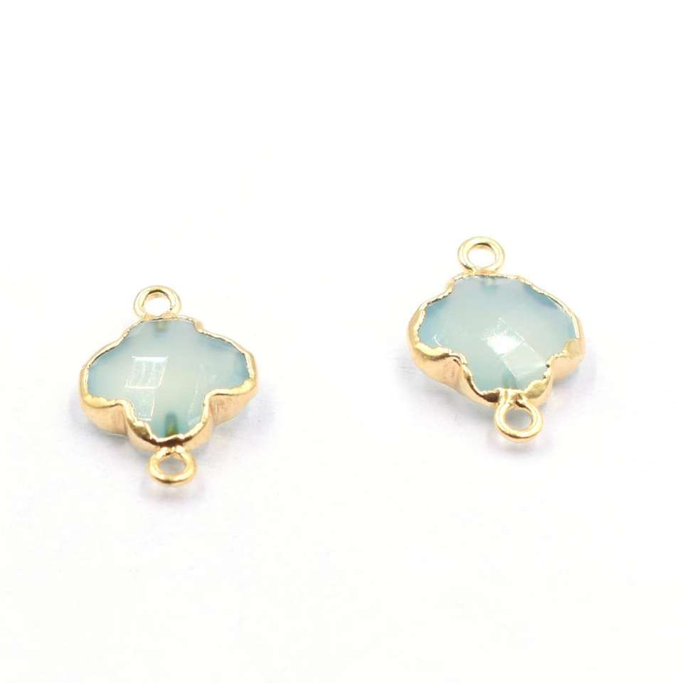 Nombre del Producto:Conector Chapado en Oro con Forma de Cuadrifolio en Calcedonia Acuática