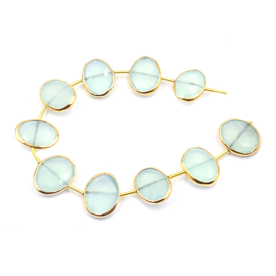 Aqua Chalcedony Gold Plated Center Drilled 10 Beads Strand