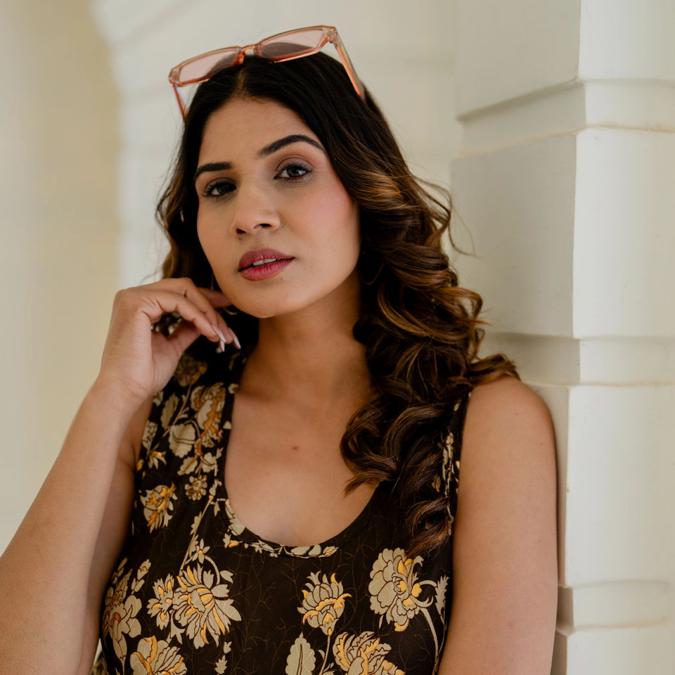 Elemento de moda:Color caramelo, Asimétrica, Estampado floral