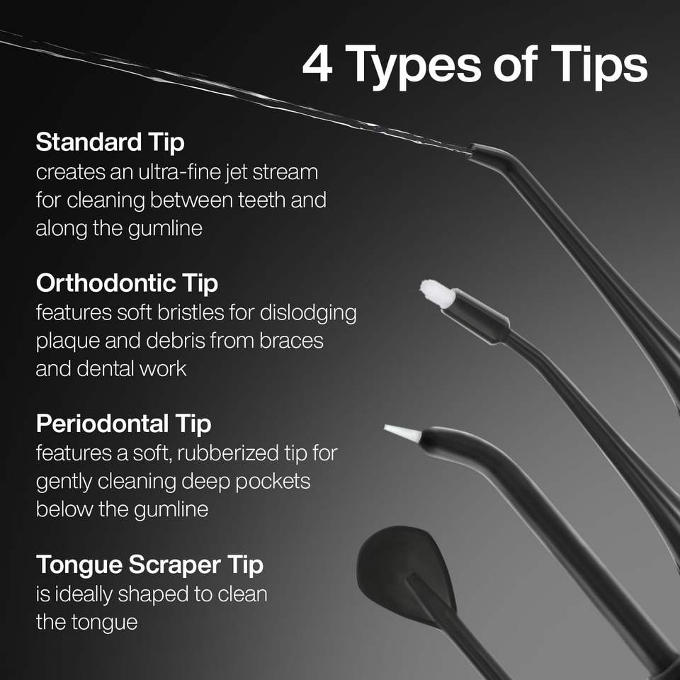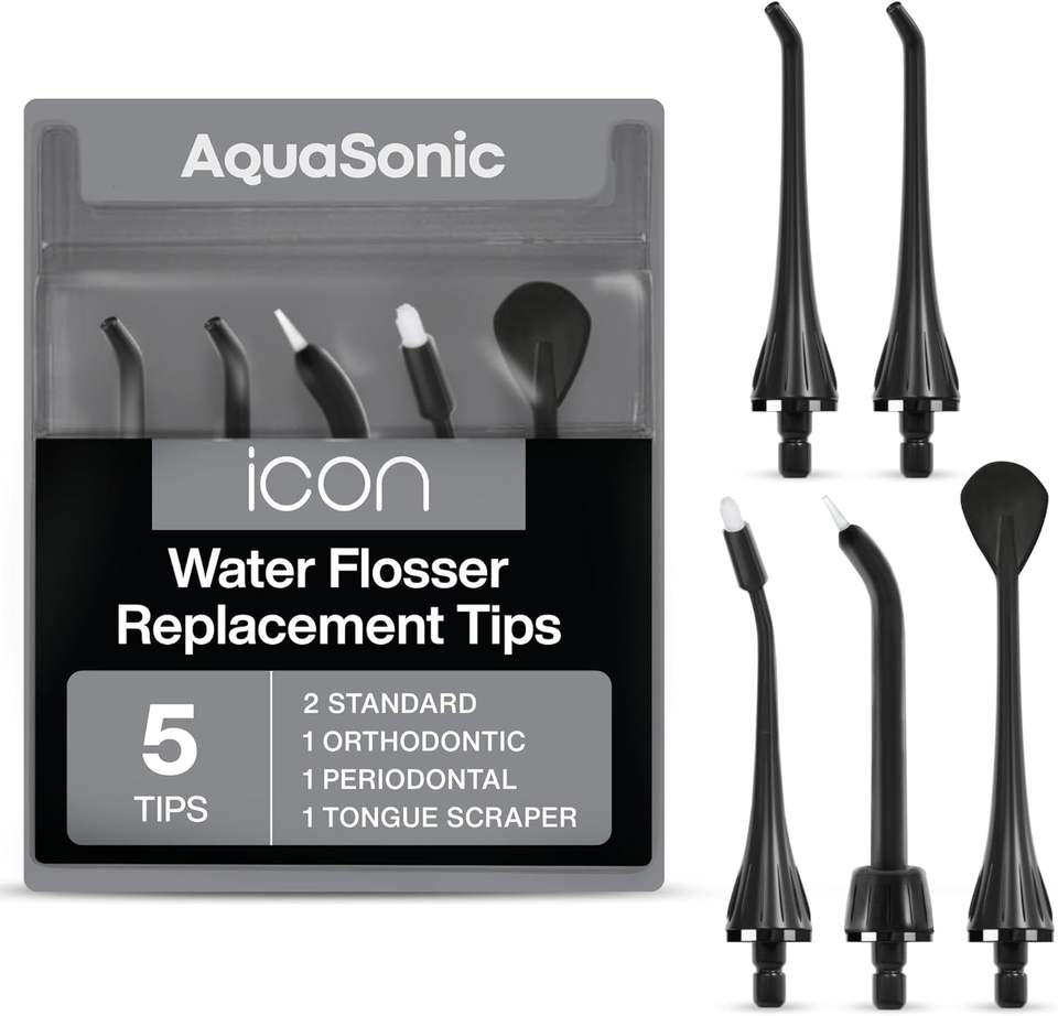 Puntas de repuesto para hilo dental de agua AquaSonic Icon-5 puntas, 4 tipos: estándar, periodontal, ortodoncia y raspador de lengua-genuino