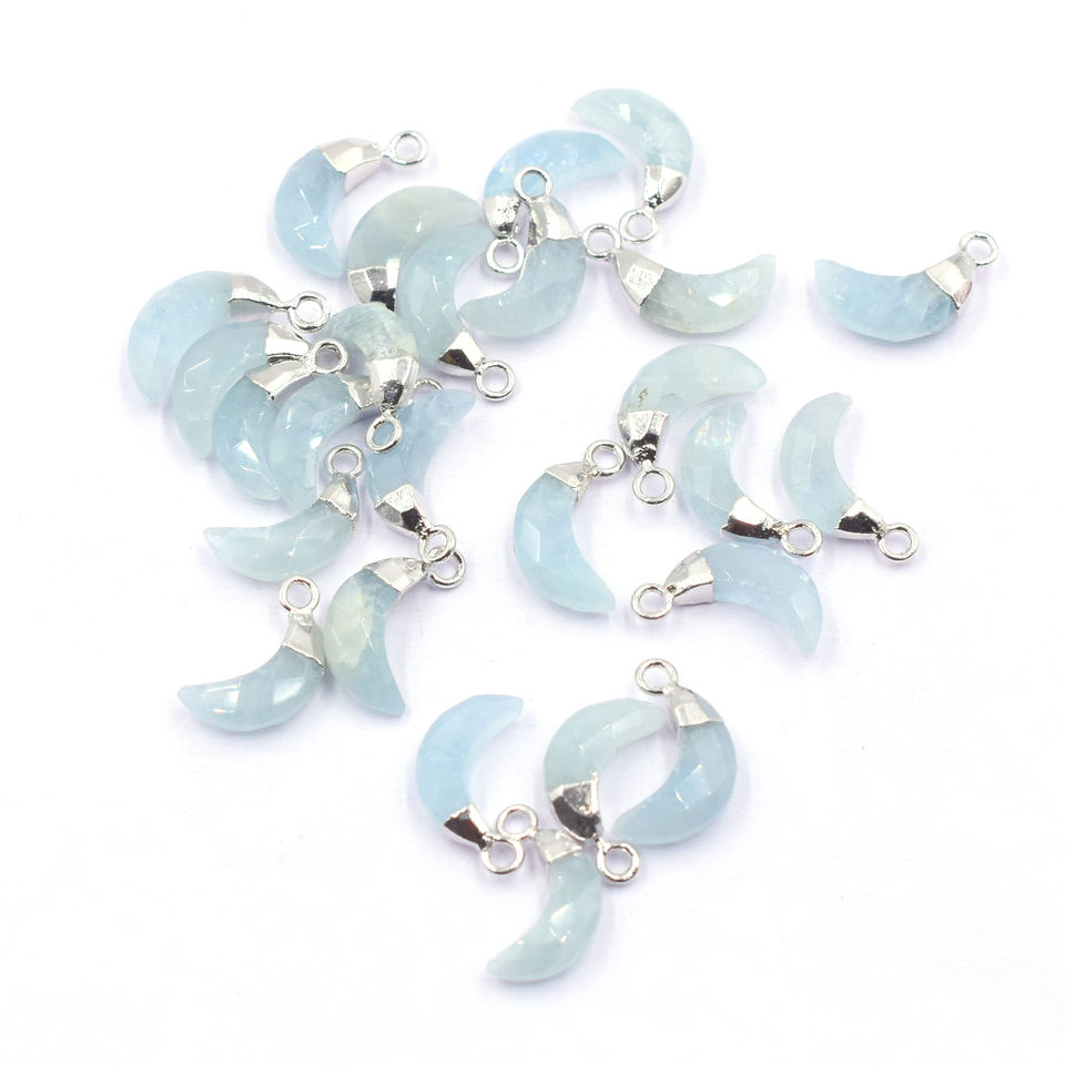 Nombre del Producto:Colgante de Aguamarina de 11 a 13 MM con Ballesta, Forma de Luna, Chapado en Plata