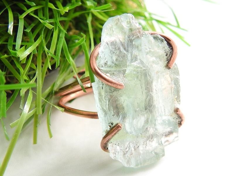 Anillo de cobre envuelto en alambre áspero Natural de Aguamarina de moda hecho a mano regalo de minerales único para mujeres