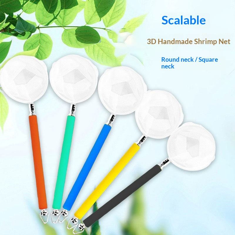 Red de Pesca para Acuario, Malla Fina Telescópica 3D con Mango Negro Antideslizante para Pesca de Camarones y Limpieza de Tanques