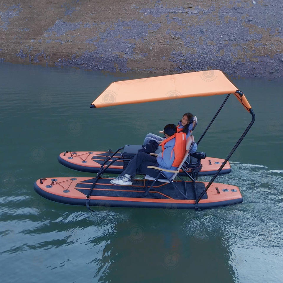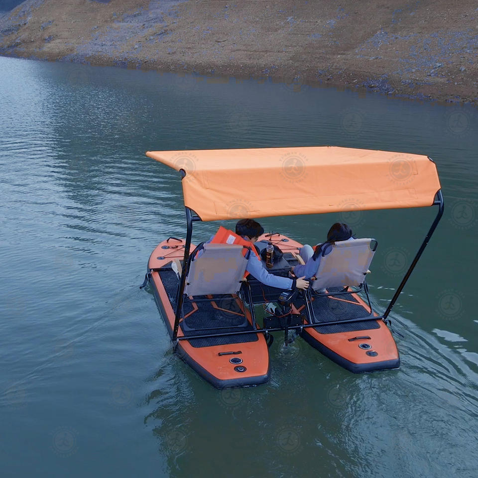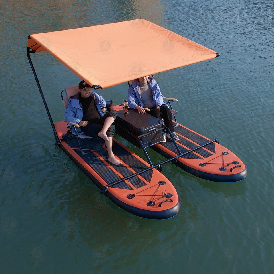 Flotador de agua Aquatic Adventure, bote de pesca inflable, tablas de remo para 2 personas con toldo de motor y asiento de salón