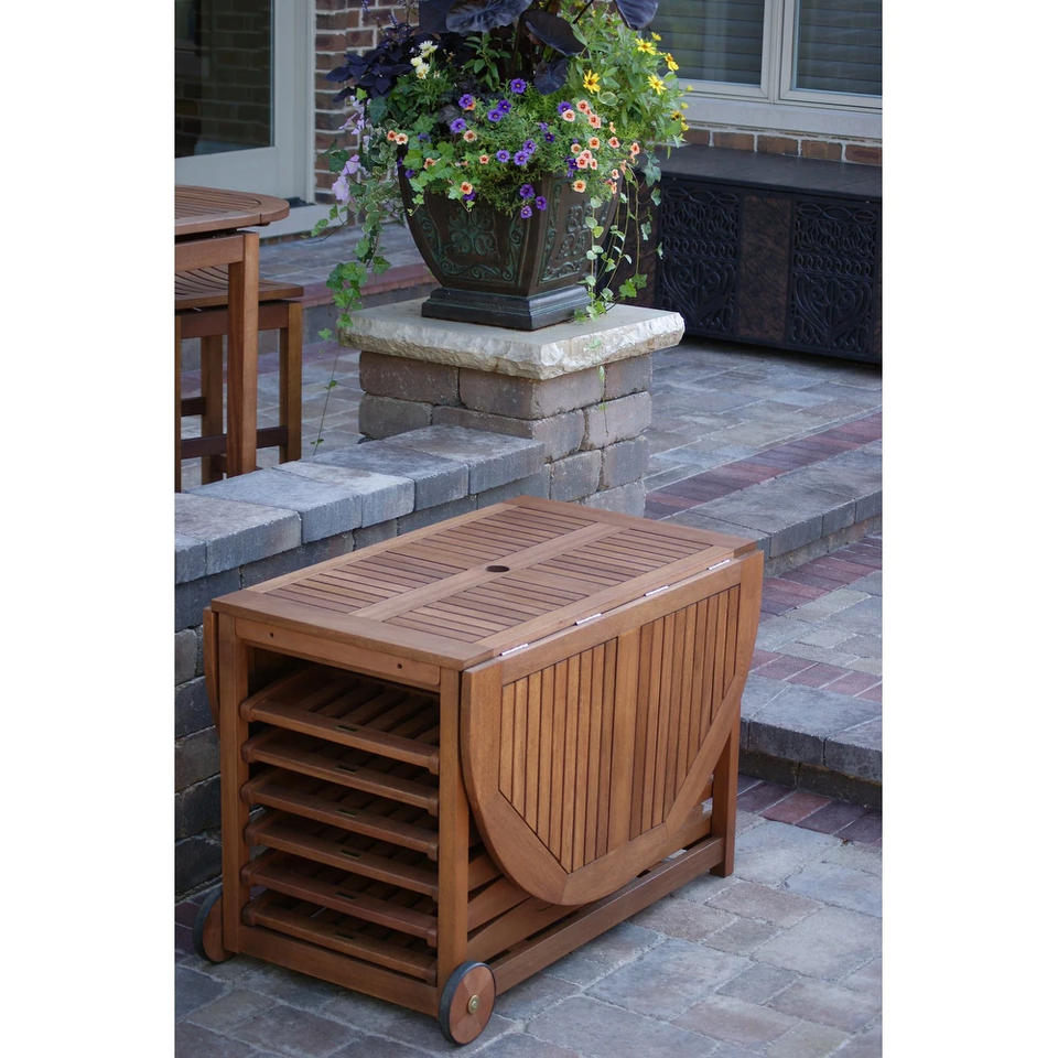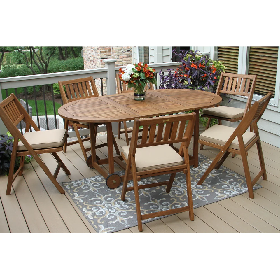 Juego de Mesa de Comedor Plegable para Exteriores Arabella de Madera Maciza con Acabado Natural