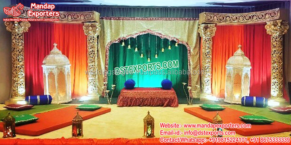 Mehndi árabe para boda, escenario de gran función nocturna, decoración musulmana para fiesta, escenario, Walima, decoración para fiesta, escenario