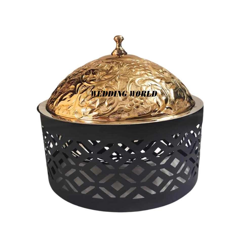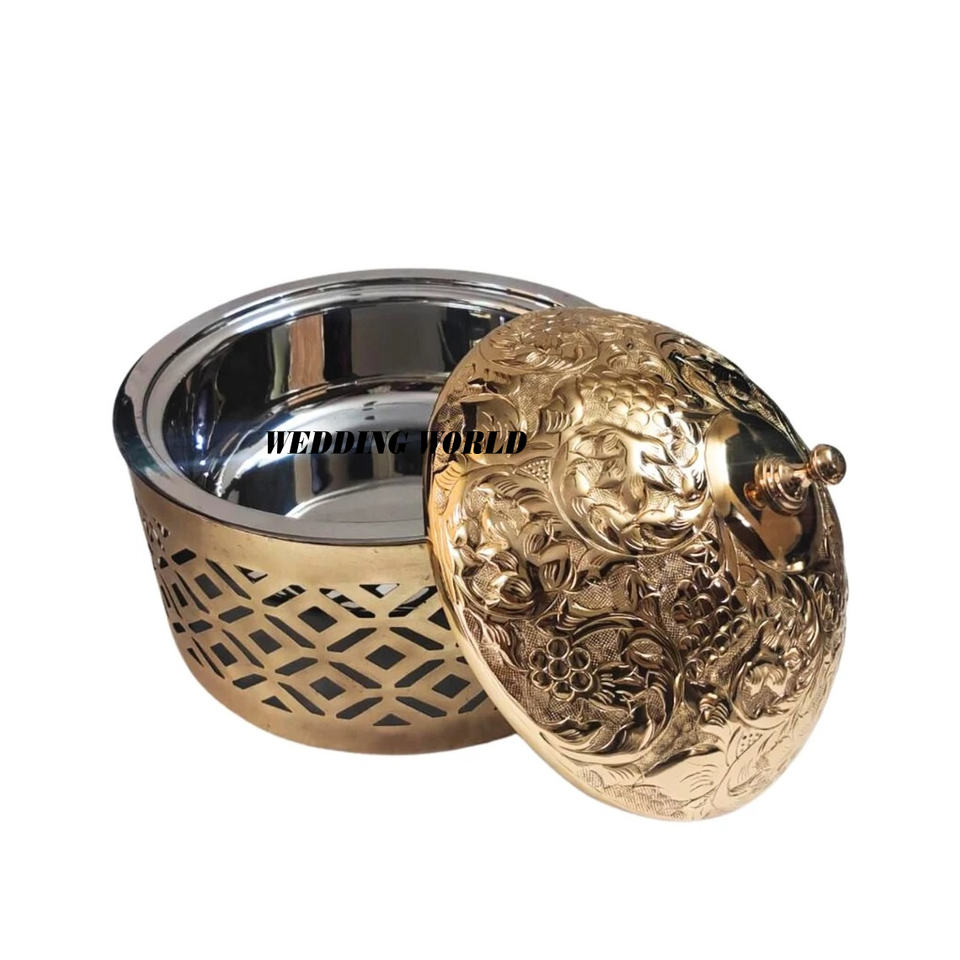 Calentador de alimentos de metal, cazuela de diseñador árabe con acabado dorado, superventas, nuevo hotpot de Metal decorativo de lujo