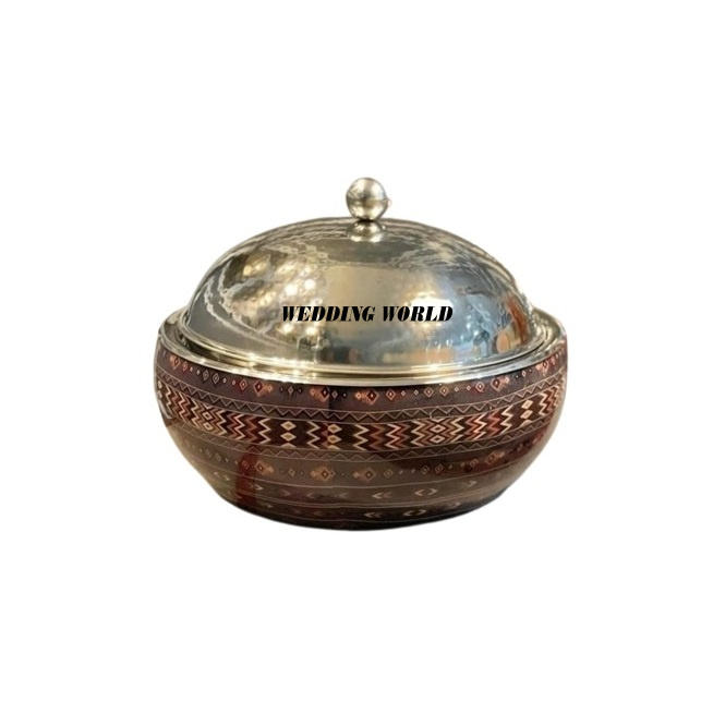 Diseño árabe Metal Hotpot Venta caliente Diseñador hecho a mano Cazuela de lujo Forma redonda Mesa Diseñador Calentador de alimentos de acero inoxidable