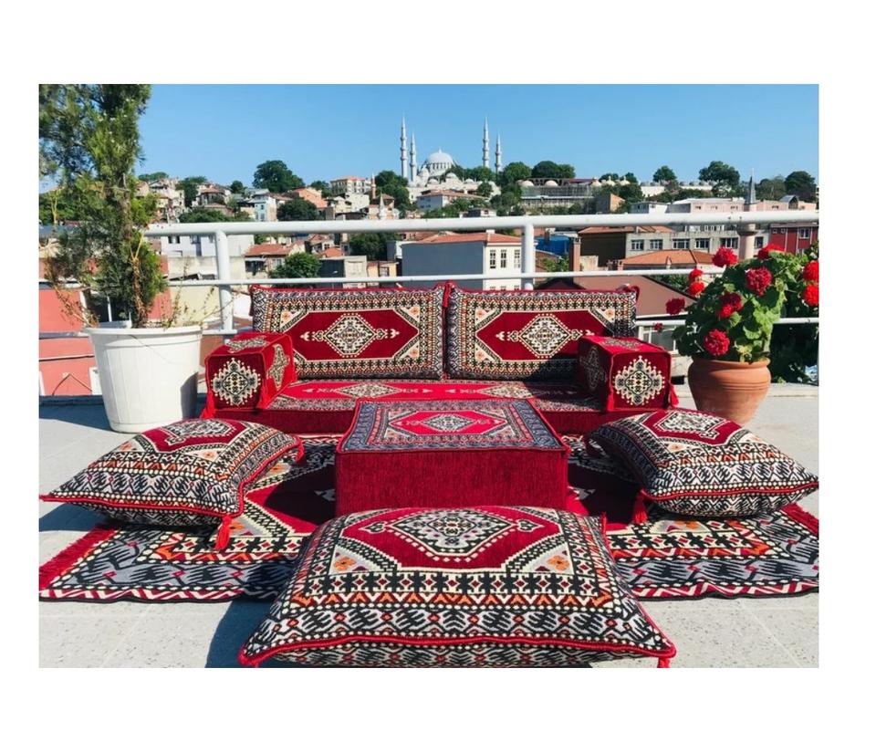 Sofá de suelo árabe Juegos completos de sala de estar-190cm/6 pies/75 pulgadas-1 Juego de 10 piezas-Cubiertas + Esponja