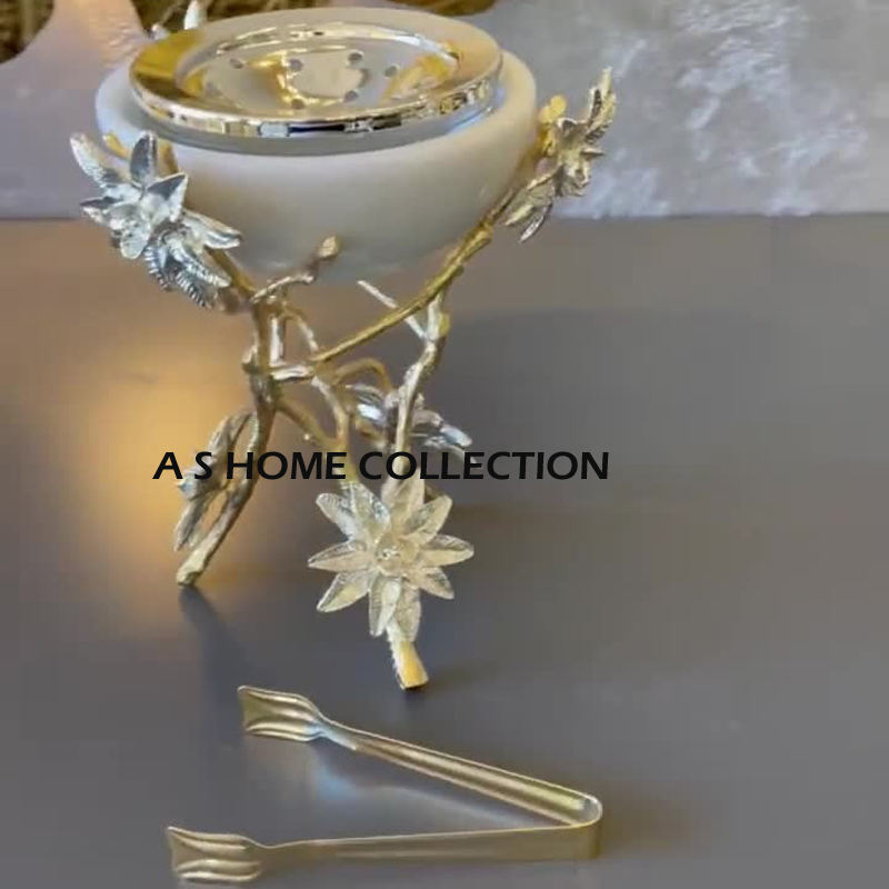 Quemador de incienso de acero inoxidable de diseño caliente árabe Quemadores Bakhoor de metal chapado en oro y plata con acabado martillado