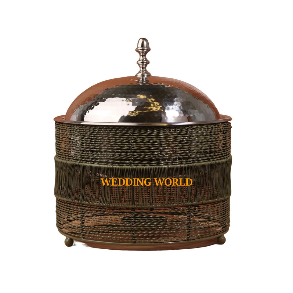 Olla Caliente de Madera con Diseño de Adhesivo Árabe, Cazuela Hecha a Mano de Calidad Superior, Calentador de Comida de Metal de Diseño Clásico y Elegante