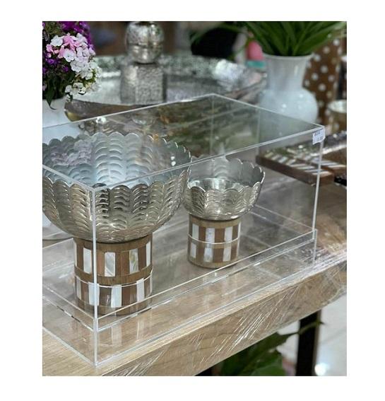Tazón de Aluminio con Incrustaciones de Nácar y Madera de Acacia, Estilo Árabe Vintage, para Regalo de Ramadán, Eid o Boda, Juego de 1 Pieza para Servir Postres y Alimentos