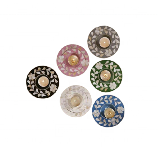 Posavasos de Nácar con Diseño Único Estilo Árabe, Artesanía de Calidad para Hoteles, Restaurantes y Cocina, Incrustaciones de Madera, 13x13 CM