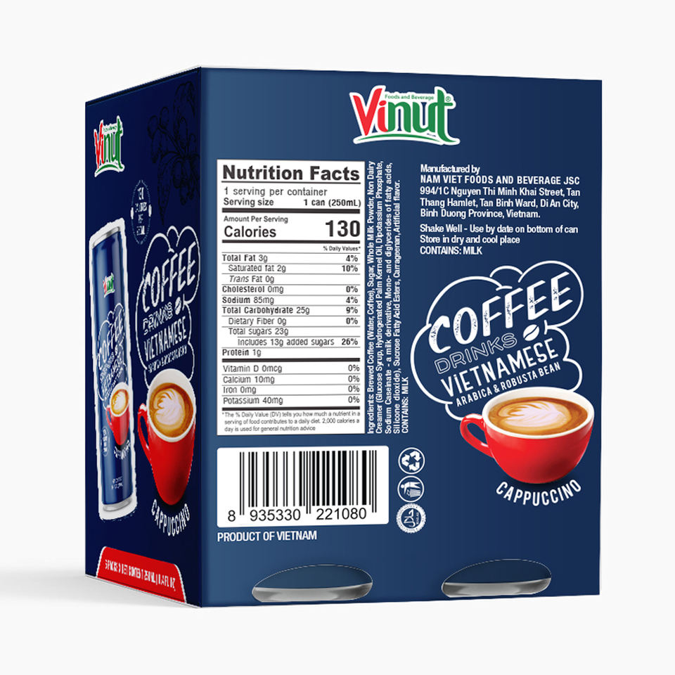 Bebidas de café Arábica y Robusta Vietnam VINUT Mocha Latte Cappuccino (250ml, paquete de 24)-Listo para beber, proveedor mayorista, OEM