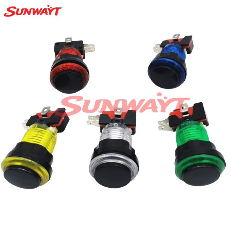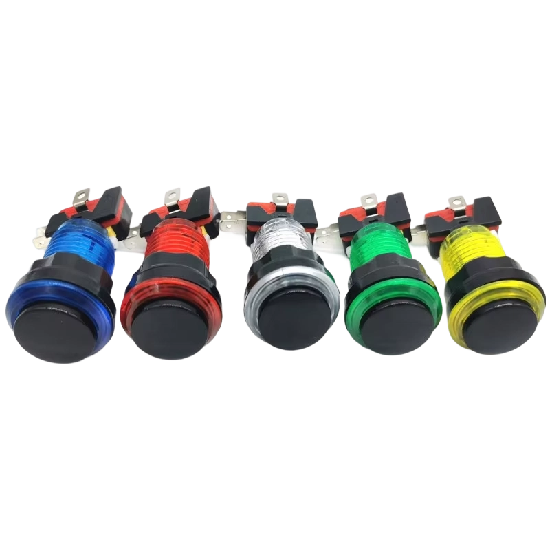 Kit de Botones de Repuesto para Máquinas de Juegos Arcade que Funcionan con Monedas, Botón de Presión con Tapa Negra, Iluminación LED, Interruptor Miro