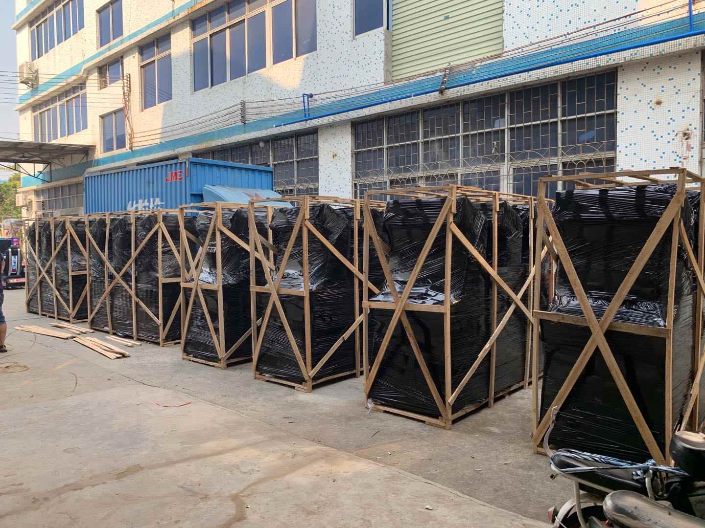Stretch film, Bubble pack, Carton paper, Wood cabinet