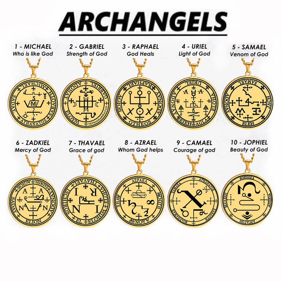 Collar con Colgante de Acero Inoxidable Sello de los Arcángeles MIGUEL GABRIEL RAFAEL URIEL SAMAEL ZADKIEL Amuleto Talismán Sigilo Angelical