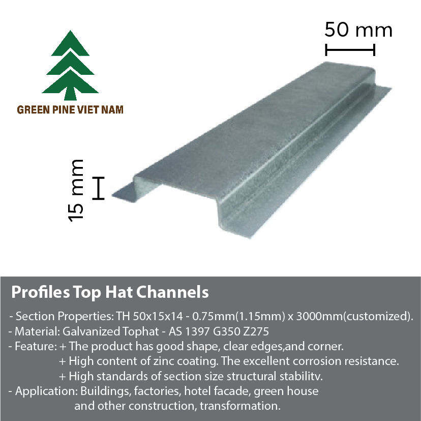 Nombre del producto:TopHat acero Furring Canal para techo de pared