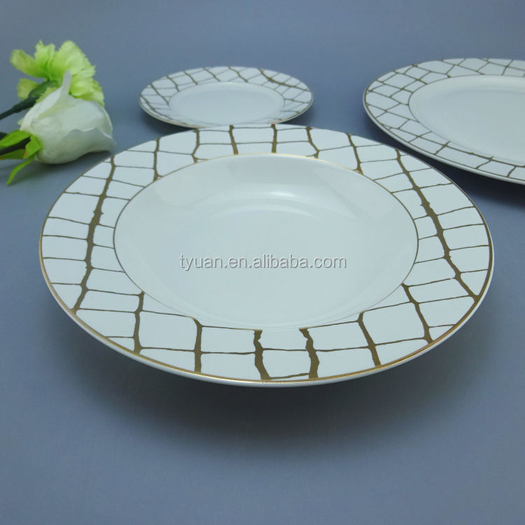 Arcopal, plato de cerámica redondo de 14 pulgadas, cargador de porcelana acentuada dorada para ensalada, postre o cena, juego de utensilios de cocina para el hogar