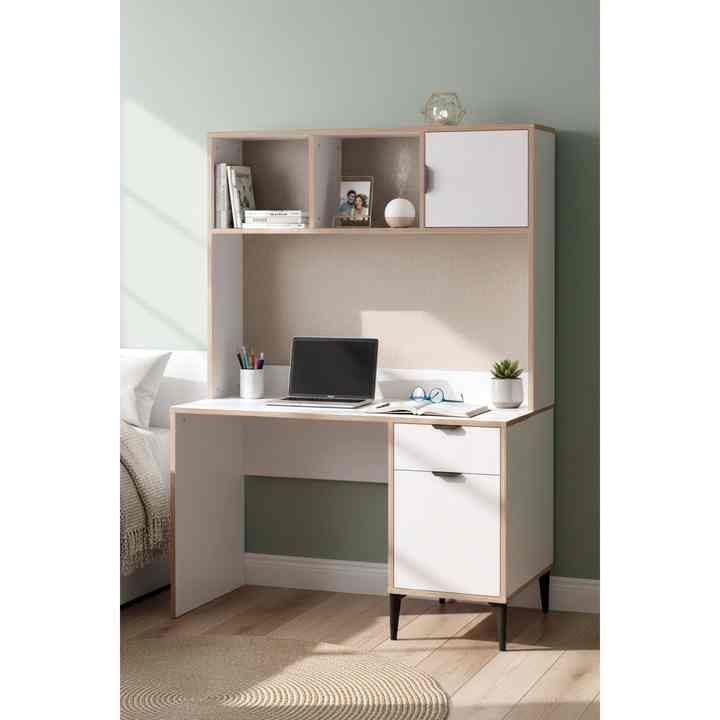 Escritorio de Oficina en Casa de Madera Ajustable y Ecológico Sarmobi con Estantería Integrada, Mesa de Estudio Moderna para Estudiantes, Escritorio para Computadora