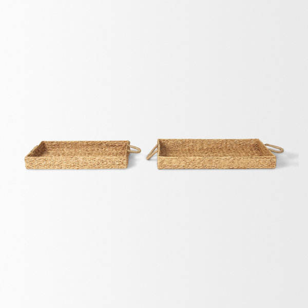 Juego de 2 bandejas de jacinto de agua Adrian, cestas decorativas ecológicas tejidas a mano naturales para servir